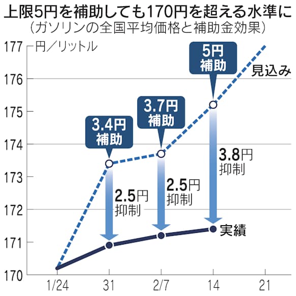 ガソリン 危うい価格統制 補助金27日に初の発動 日本経済新聞